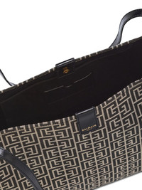 medium Release monogram jacquard tote bag Highlights - Black and beige - Monogram jacquard - Leather trims - Top handle - Magnetic fastening - Logo detail Made in Italy Composition Outer: CALFSKIN 100%, Cotton 47%, Polyester 19%, Polyamide 17%, Polyurethane 17%