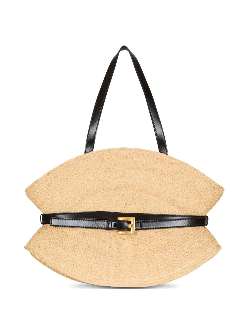 medium Shuffle raffia bag Highlights - Sand beige - Clasp fastening - Two long top handles - Leather trim - This piece comes complete with a protective dust bag. Made in Italy Composition Outer: Synthetic Raffia 100%, Calf Leather 100%