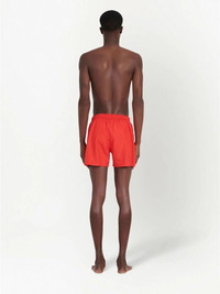 metallic-logo swim shorts bright red logo print to the side metallic effect elasticated waistband straight leg Be mindful to try on swimwear over your own garments. Made in Italy Composition Polyester 100%