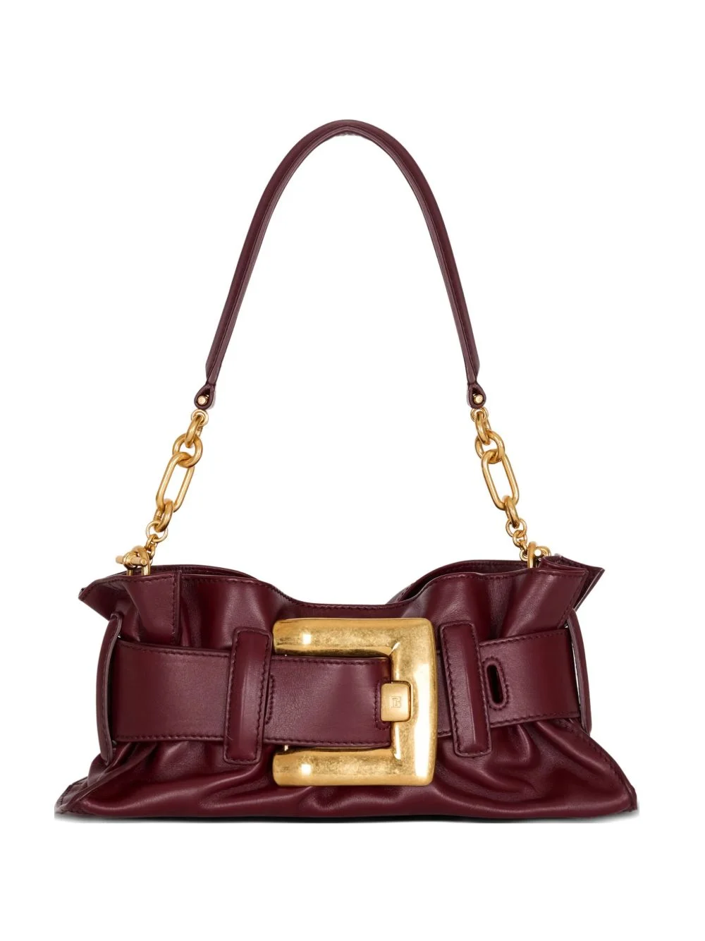mini Anthem buckle-embellished calfskin-leather clutch bag Highlights - Dark-red - Calfskin leather - Gold-tone buckle - Gathered detailing - Chain strap - Top handle Made in Italy Composition Outer: CALFSKIN 100% SIZE & FIT Measurement DEPTH 3.93 in(10 cm) HEIGHT 7.08 in(18 cm) WIDTH 9.44 in(24 cm)