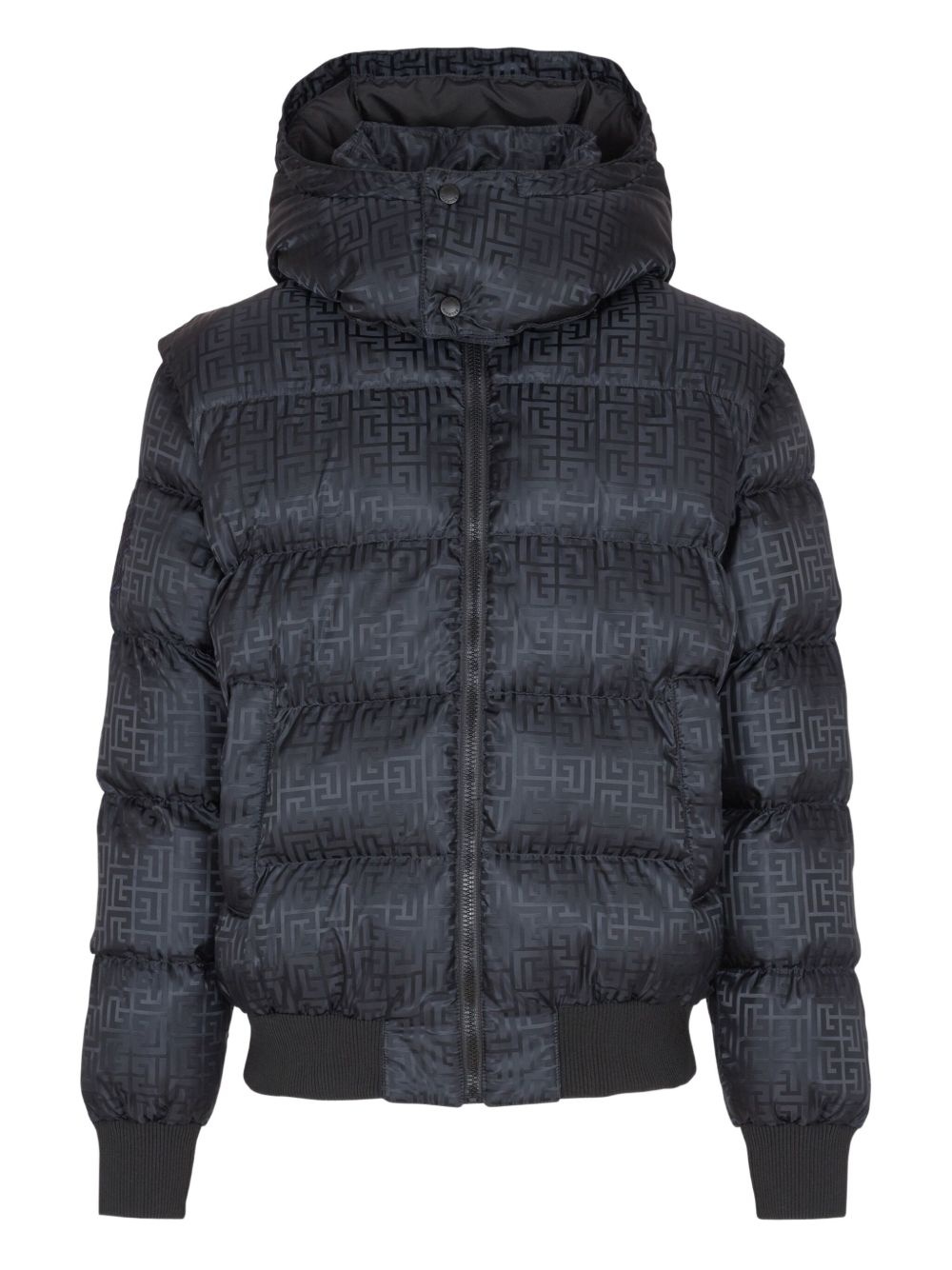 monogram-jacquard padded jacket Highlights - Black - Front zip fastening - Two side welt pockets - Slouchy hood - Ribbed cuffs and hem Imported Composition Body: Polyamide 100%