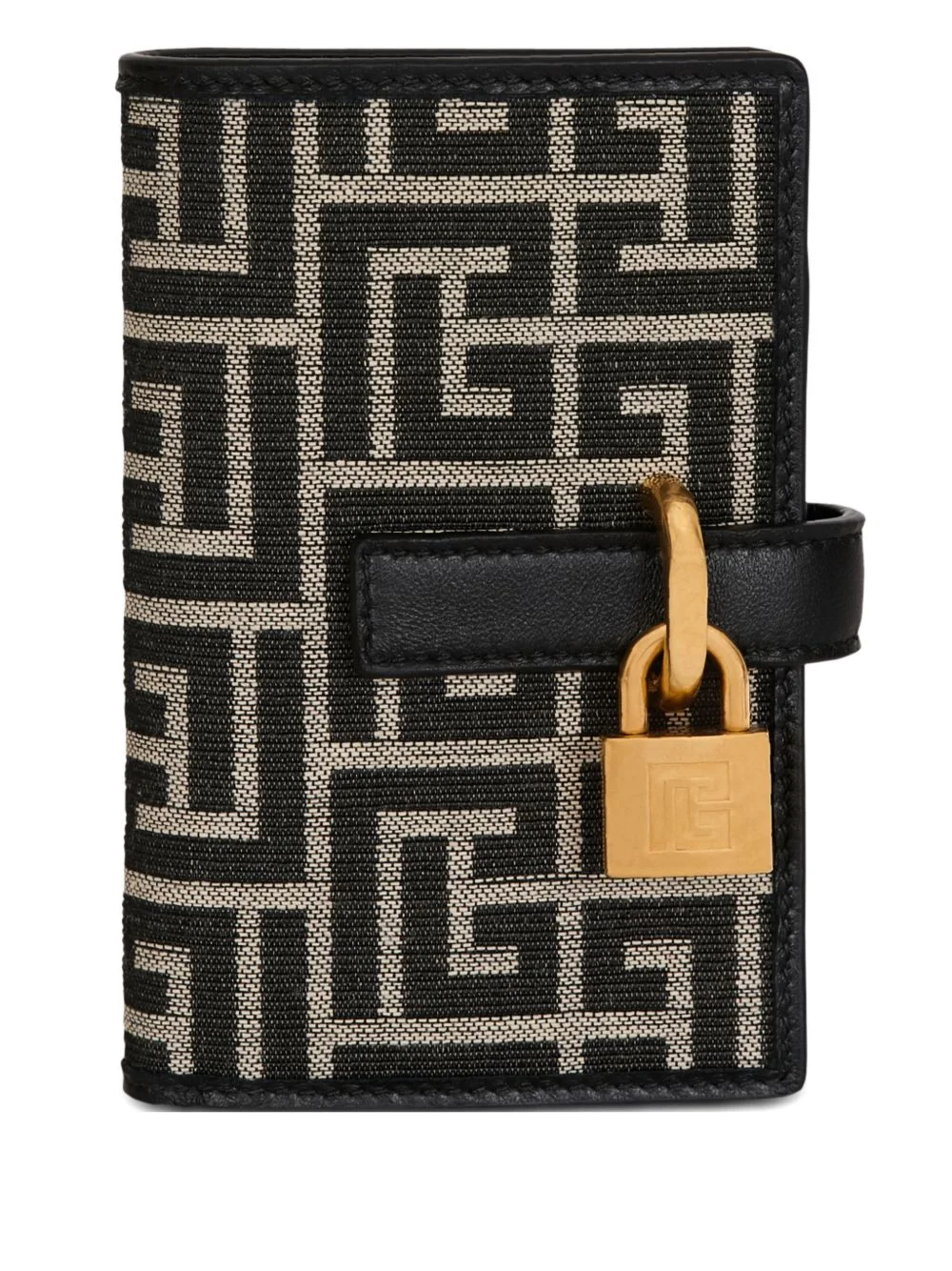 monogram jacquard wallet Highlights - Black and beige - All-over pattern - Gold-tone hardware - Press-stud fastening - Internal card slots - Padlock detail Made in Italy Composition Outer: Polyester 63%, Cotton 37% SIZE & FIT Measurement LENGTH 4.92 in(12.5 cm) WIDTH 3.34 in(8.5 cm)