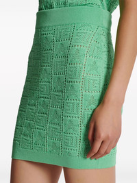 pointelle-knit monogram miniskirt Highlights - Grass green - Open knit - Ribbed-knit edge - Monogram pattern - Perforated logo detail - High-waisted - Rear zip fastening - Slim cut - Thigh-length - Straight hem Made in Italy Composition Viscose 84%, Polyester 16% SIZE & FIT FittingInformation This mini-length skirt is intended to be worn just below the waist Made with a midweight knit, this piece offers some stretch Measurement LENGTH 15.98 in(40.6 cm) WAIST 22.99 in(58.4 cm) HIPS 30.98 in(78.7 cm) Washing instructions Read Manufacturer Guidelines