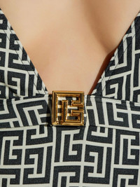 monogram-pattern swimsuit Highlights - Black - Halterneck tie fastening - V-neck - Gold-tone logo plaque - Be mindful to try on swimwear over your own garments. Made in Italy Composition Outer: Polyamide 82%, Elastane 18%