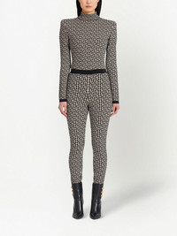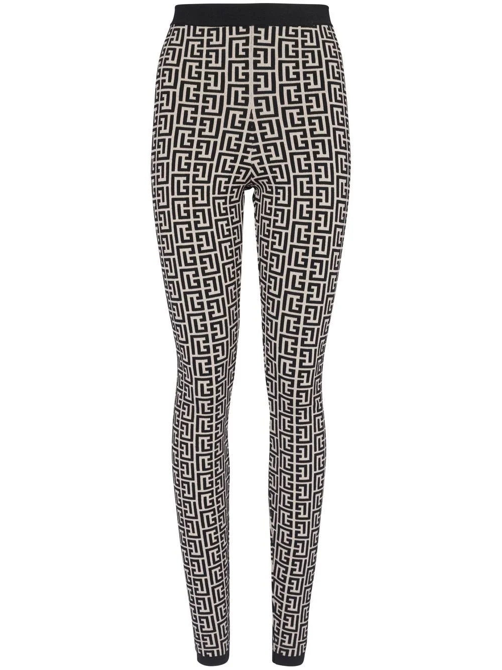 monogram-print high-waisted leggings Balmain's penchant for bold designs is showcased in these leggings. This high-waisted pair is presented in a bold all-over monogram print for a recognisable look. Made in Italy Composition Viscose 73%, Polyester 15%, Polyamide 6%, Metallized Polyester 5%, Elastane 1% SIZE & FIT Measurement INSIDE LEG 31.88 in(81 cm) HIPS 27.55 in(70 cm) WAIST 22.44 in(57 cm)