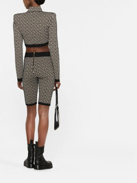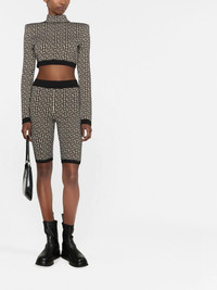 monogram-print knitted shorts black/white stretch-wool monogram pattern high-waisted skinny cut knee-length Made in Italy Composition Wool 50%, Viscose 27%, Polyamide 21%, Spandex/Elastane 2% SIZE & FIT Model measurements Height 5 ft 10 in(1.77 m) Bust/Chest 31.49 in(80 cm) Hips 33.85 in(86 cm) Waist 22.44 in(57 cm) Measurement INSIDE LEG 10.23 in(26 cm) HIPS 26.77 in(68 cm) FittingInformation This piece fits true to size. We recommend you get your regular size Cut for a close fit Made with a mid-weight stretch fabric Washing instructions Dry Clean Only