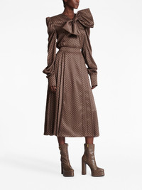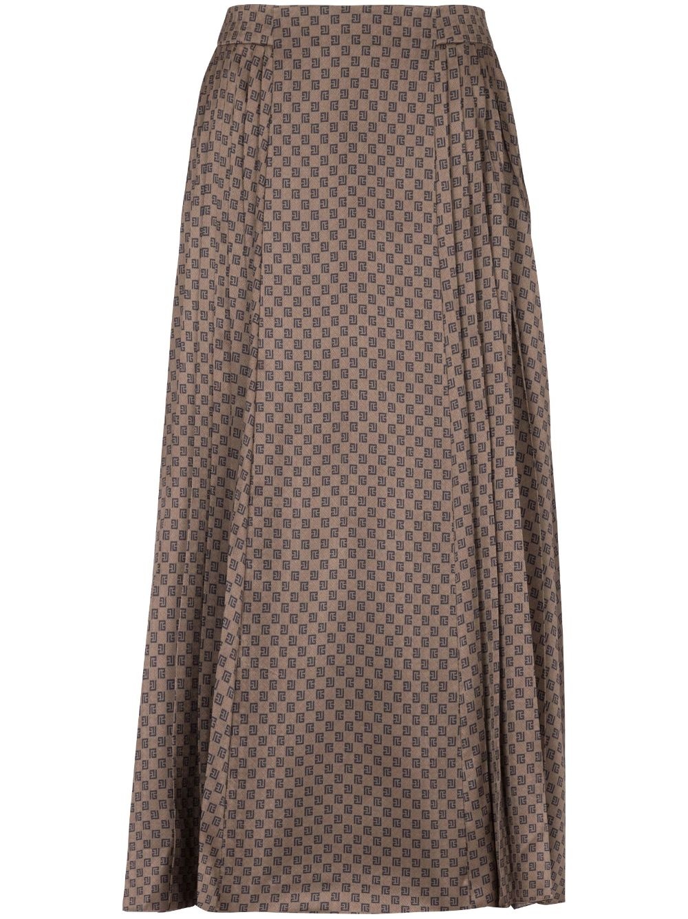 monogram-print pleated midi skirt Highlights - Brown - Monogram print - Pleat detailing - Rear zip fastening - High-waisted - Straight hem - Mid-length Made in Italy Composition Body: Polyester 100% SIZE & FIT Measurement HIPS 39.37 in(100 cm) LENGTH 35.03 in(89 cm) WAIST 28.34 in(72 cm) Washing instructions Specialist Cleaning