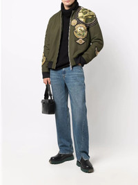 multi-badge pilot jacket Balmain transfers their penchant for bold, dynamic designs into their casualwear as seen in this jacket. Constructed from pure cotton in a khaki green hue, this piece is designed with an pilot silhouette and detailed with multiple badges that reflect the brand’s aesthetic. Made in Italy Composition Outer: Cotton 100% SIZE & FIT Model measurements Height 6 ft 3 in(1.9 m) Bust/Chest 38.18 in(97 cm) Hips 37.79 in(96 cm) Waist 32.67 in(83 cm) Washing instructions Dry Clean Only