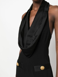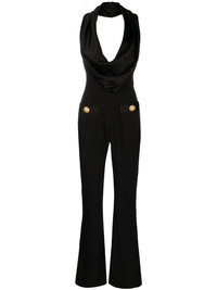 Button-embellished draped satin and crepe jumpsuit