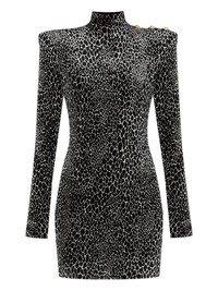 padded-shoulder animal-print dress Highlights - Black and white - Animal print - Padded shoulders - High neck - Long sleeves - Zip fastening Imported Composition Fabric 70%, Cotton 30% Washing instructions Read Manufacturer Guidelines