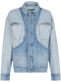 panelled-design denim jacket light blue cotton panelled design cut-out detailing classic collar front button fastening long sleeves two chest patch pockets Made in Italy Composition Cotton 100%
