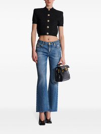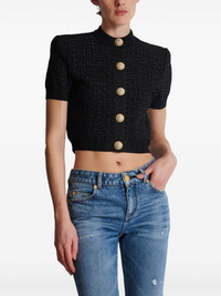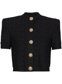 PB Labyrinth cropped cardigan Highlights - Black - Monogram jacquard - Metallic threading - Lion head motif - Ribbed trim - Crew neck - Front press-stud fastening - Short sleeves - Straight hem - Cropped Made in France Composition Viscose 86%, Polyester 10%, Metallic Fibre 4%
