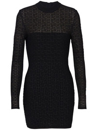 PB Labyrinth knitted minidress Highlights - Black - Knitted construction - Metallic threading - Monogram jacquard - Crew neck - Rear zip fastening - Long sleeves - Straight hem - Thigh-length Made in France Composition Viscose 81%, Polyester 19% SIZE & FIT FittingInformation Designed for a close fit throughout Made from a midweight non-stretch fabric, this piece offers minimal elasticity when worn Washing instructions Specialist Cleaning