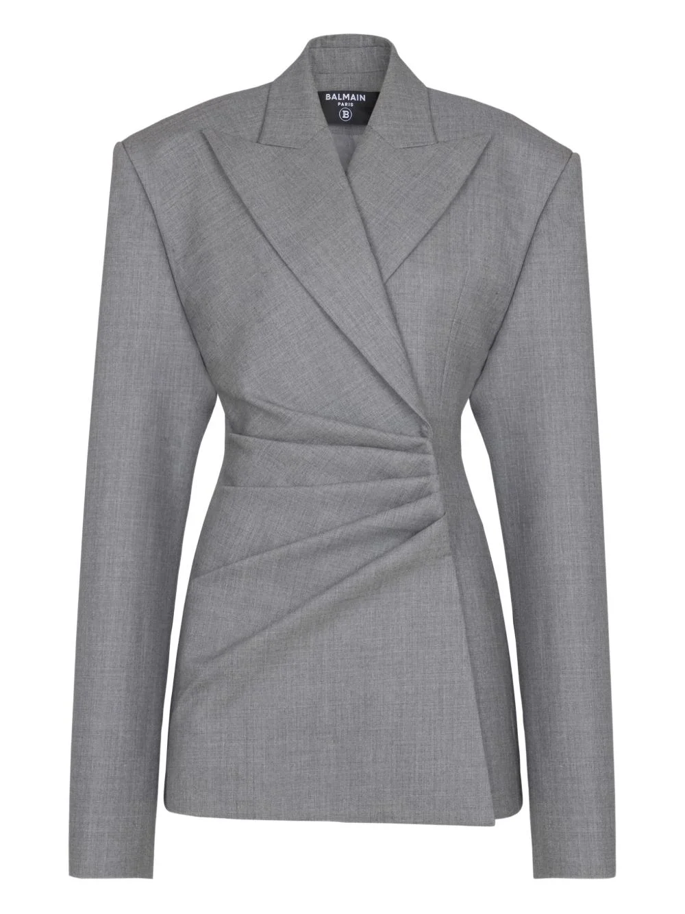 peak-lapels blazer dress Highlights - Grey - Wool fabric - Draped detail - Buttoned cuffs - Peak lapels Imported Composition Virgin Wool 100% Washing instructions Specialist Cleaning
