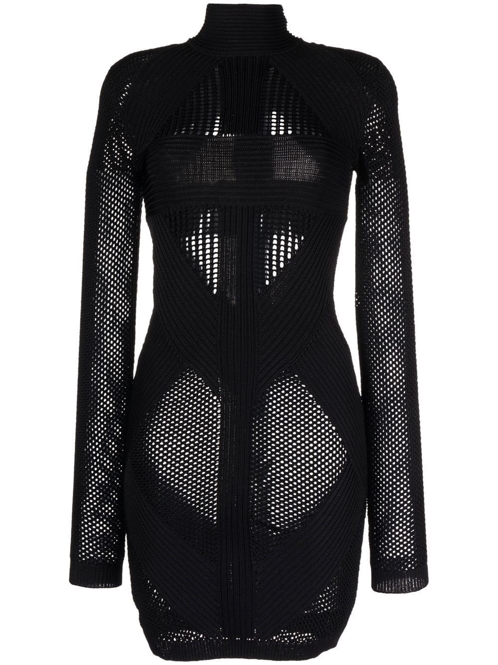 perforated-knit detail dress jet black stretch-design sheer panelling perforated detailing roll neck long sleeves short length Made in France Composition Viscose 83%, Polyamide 17% SIZE & FIT Model measurements Height 5 ft 10 in(1.77 m) Bust/Chest 31.49 in(80 cm) Hips 35.43 in(90 cm) Waist 25.19 in(64 cm) Measurement HIPS 30.7 in(78 cm) LENGTH 34.25 in(87 cm) WAIST 25.98 in(66 cm) FittingInformation This piece fits true to size. We recommend you get your regular size Cut for a close fit Made with a heavyweight fabric Washing instructions Dry Clean Only