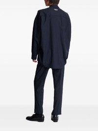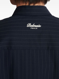 pinstripe emblem shirt Highlights - Navy blue - Pinstripe pattern - Embroidered emblem - Point collar - Long sleeves - Button fastening Made in Italy Composition Wool 98%, Elastane 2% Washing instructions Read Manufacturer Guidelines