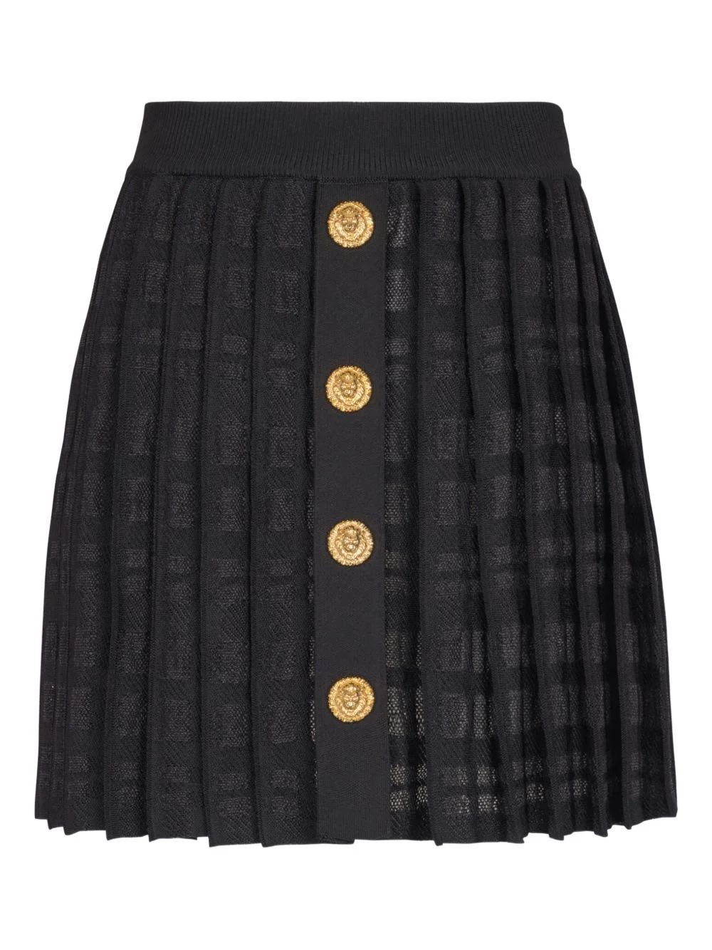 plaid-check pleated skirt Highlights - Black - Plaid-check pattern - Pleated design - Gold-tonebutton embellishment - Zip fastening Made in France Composition Viscose 77%, Polyester 14%, Polyamide 8%, Elastane 1% Washing instructions Specialist Cleaning