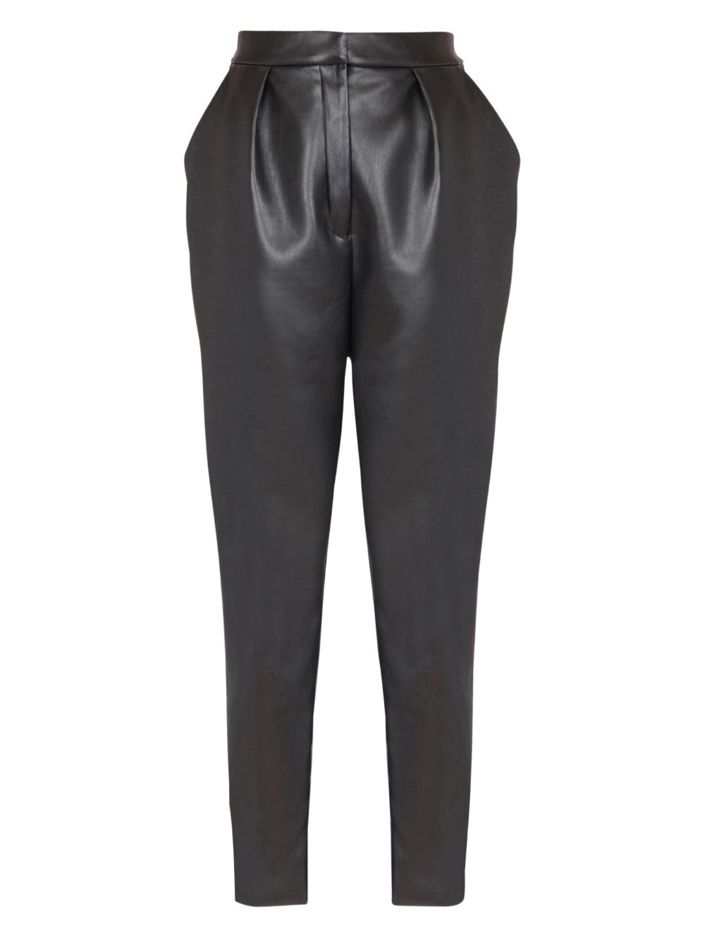 pleat-detailing trousers Highlights - Black - Concealed front fastening - Two side slit pockets - Tapered leg Imported Composition Viscose 100% Washing instructions Read Manufacturer Guidelines