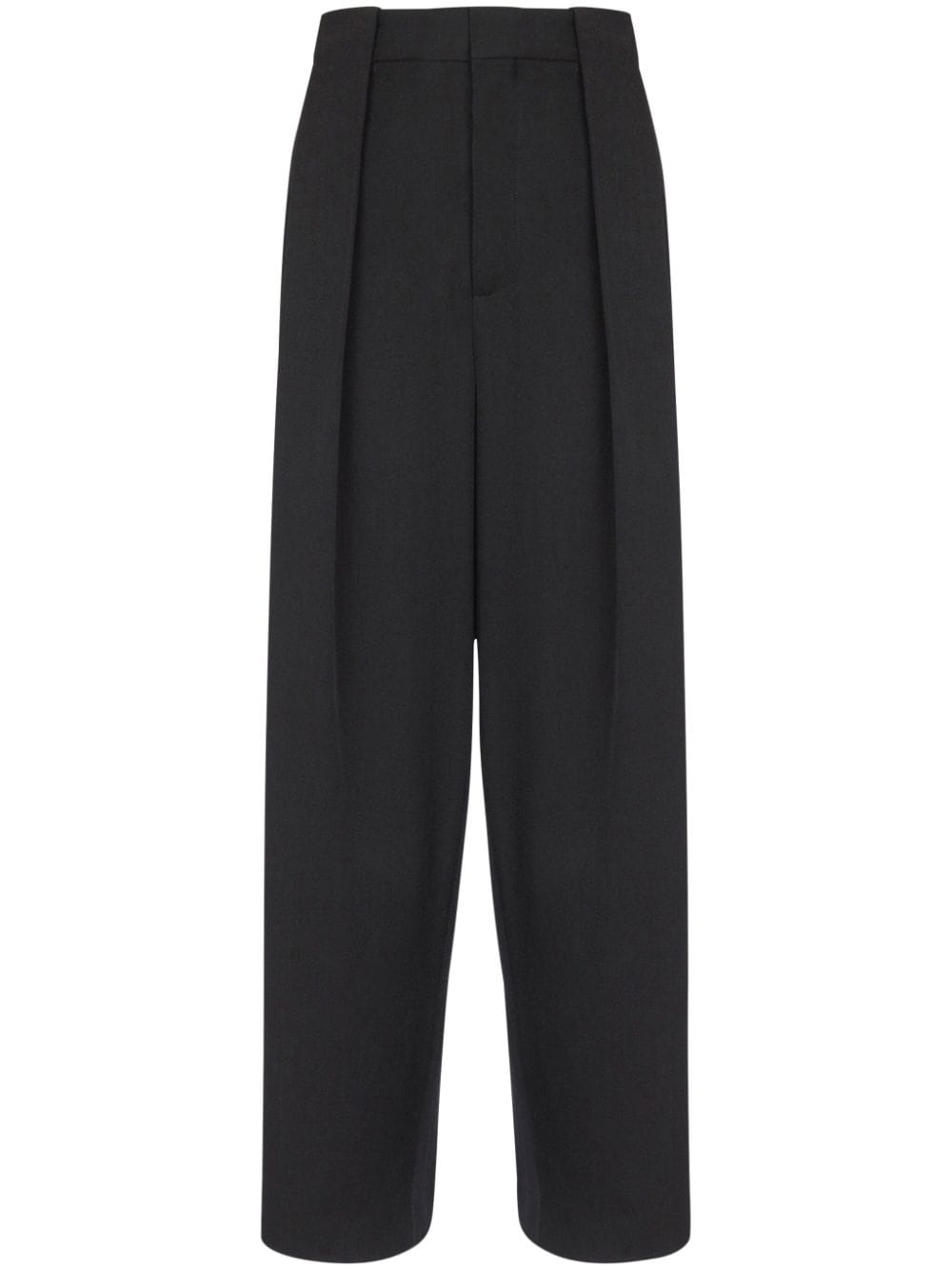 pleated grain de poudre trousers Highlights - Black - Wool - Grain de poudre - Pleat detailing - Concealed front button, hook and zip fastening - Belt loops - High-rise - Slip pockets to the sides - Two rear slash pockets Imported Composition Wool 100%
