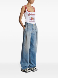 pleated jeans Highlights - Indigo blue - Cotton - Washed denim - Pleat detailing - Logo patch to the rear - High-rise - Wide leg - Belt loops - Two rear welt pockets - Slip pockets to the sides - Front button and zip fastening Imported Composition Cotton 100%