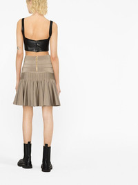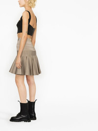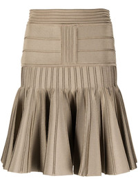 pleated knit miniskirt This Balmain miniskirt is defined by its panelled construction and exposed seam detailing. Knife pleats at the flared hem add movement to the neutral design. Highlights - Taupe - Knitted construction - Seam detailing - High waist - Pleated skirt - Thigh-length - Straight hem Made in France Composition Viscose 80%, Polyamide 18%, Spandex/Elastane 2% SIZE & FIT Model measurements Height 5 ft 10 in(1.79 m) Bust/Chest 31.49 in(80 cm) Hips 35.03 in(89 cm) Waist 23.62 in(60 cm) Measurement HIPS 25.19 in(64 cm) LENGTH 31.49 in(80 cm) WAIST 19.88 in(50.5 cm) FittingInformation This piece fits true to size. We recommend you get your regular size Designed to be fitted at the waist and hips, loose over the leg Made with a mid-weight fabric