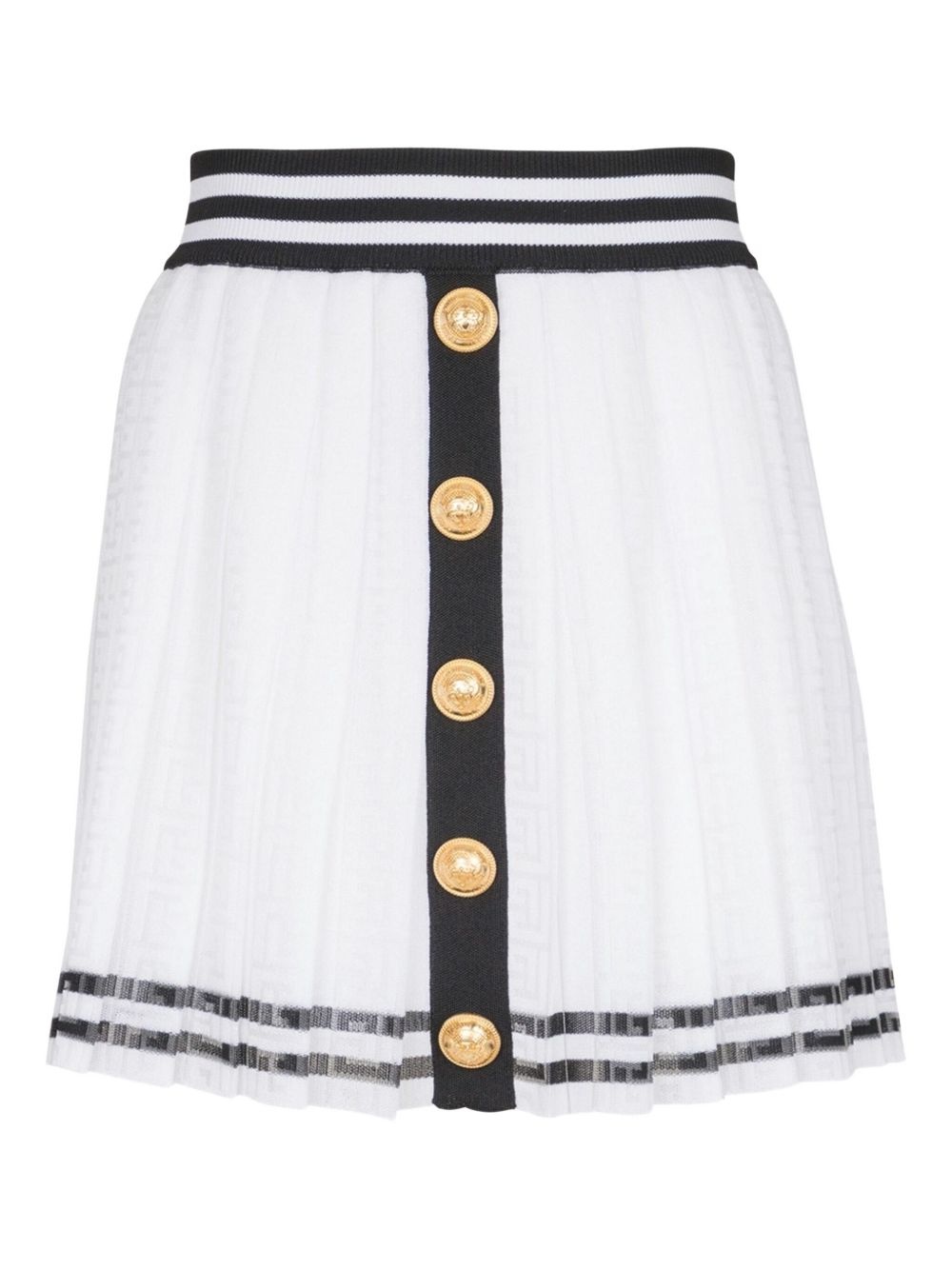 pleated mini skirt Highlights - White - Rear zip fastening - Decorative button detailing - Stripe detailing - Flared hem Made in France Composition Viscose 69%, Polyamide 31%