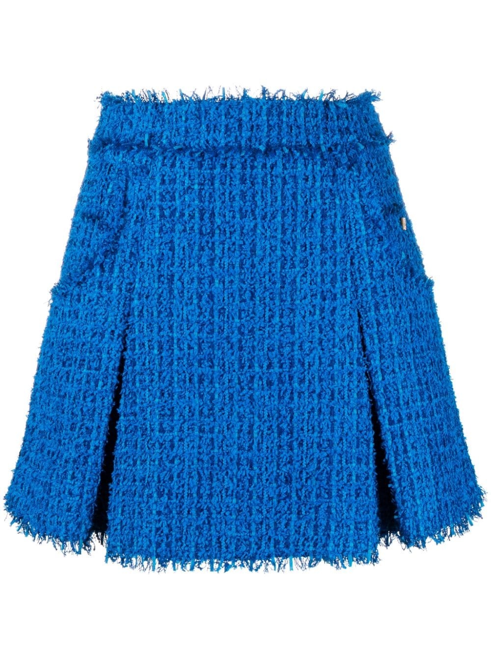 pleated tweed miniskirt Balmain introduces this miniskirt in a bold cobalt-blue hue. Cut to an A-line silhouette, it's defined by its tactile tweed construction and precisely pleated detailing. Highlights - Cobalt blue - Tweed - Pleat detailing - A-line - Two side slash pockets - Rear zip fastening - Thigh-length - Straight hem Imported Composition Outer: Polyamide 79%, Virgin Wool 15%, Cotton 6% Lining: Viscose 52%, Cotton 48% SIZE & FIT Model measurements Height 5 ft 9 in(1.76 m) Bust/Chest 31.88 in(81 cm) Hips 35.43 in(90 cm) Waist 24.8 in(63 cm) Measurement LENGTH 16.53 in(42 cm) WAIST 25.19 in(64 cm) HIPS 36.22 in(92 cm) FittingInformation This mini-length skirt is intended to be worn just below the waist Made from a midweight non-stretch fabric This piece fits true to size – take your usual size Washing instructions Dry Clean Only