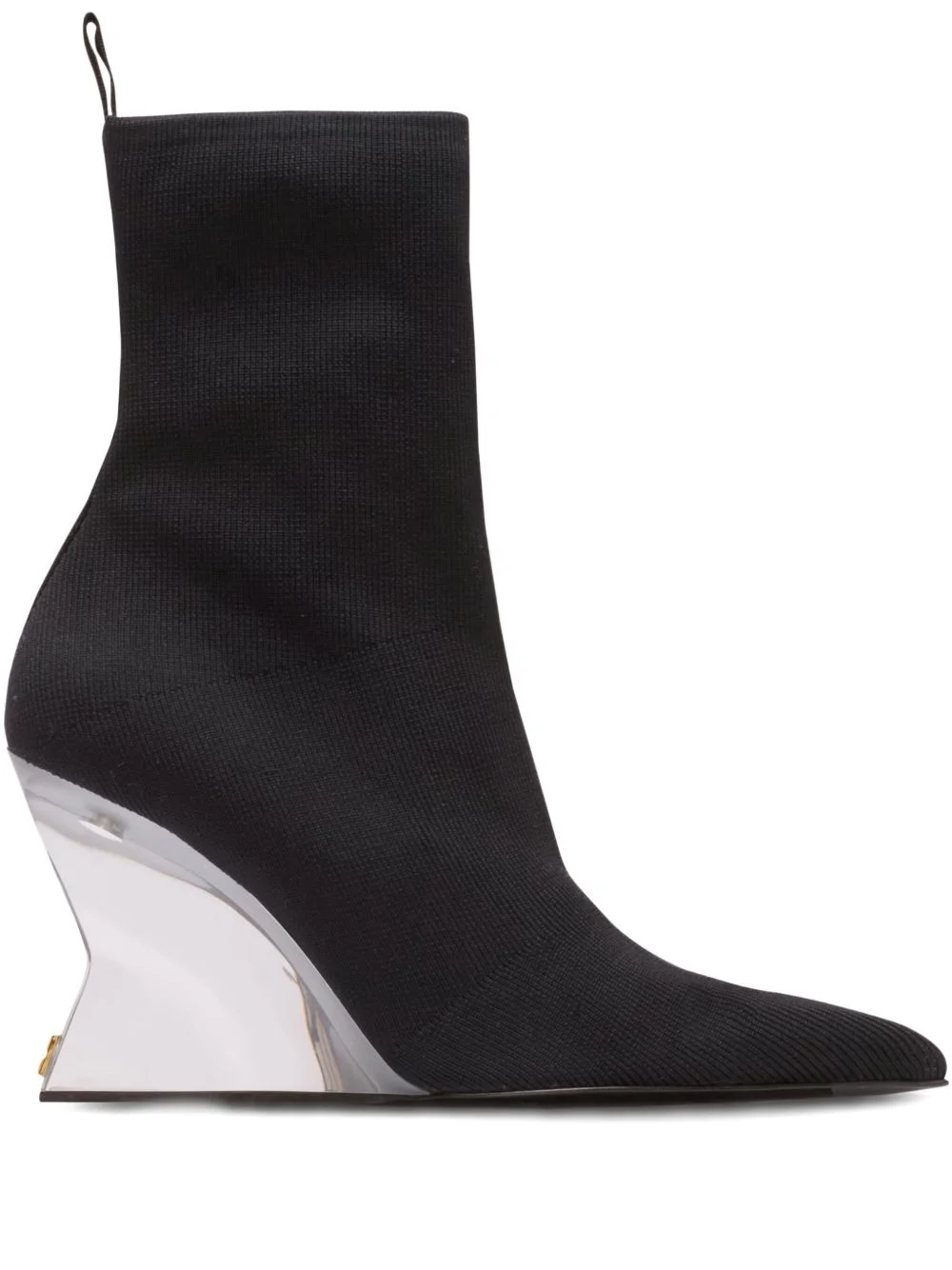 pointed-toe boots Highlights - Black - Knit texture - Pull tab - Pointed toe - Wedge heel - Gold-tone logo detail Made in Italy Composition Outer: Polyamide 90%, Elastane 10% Lining: Fabric 100% Sole: Calf Leather 100%