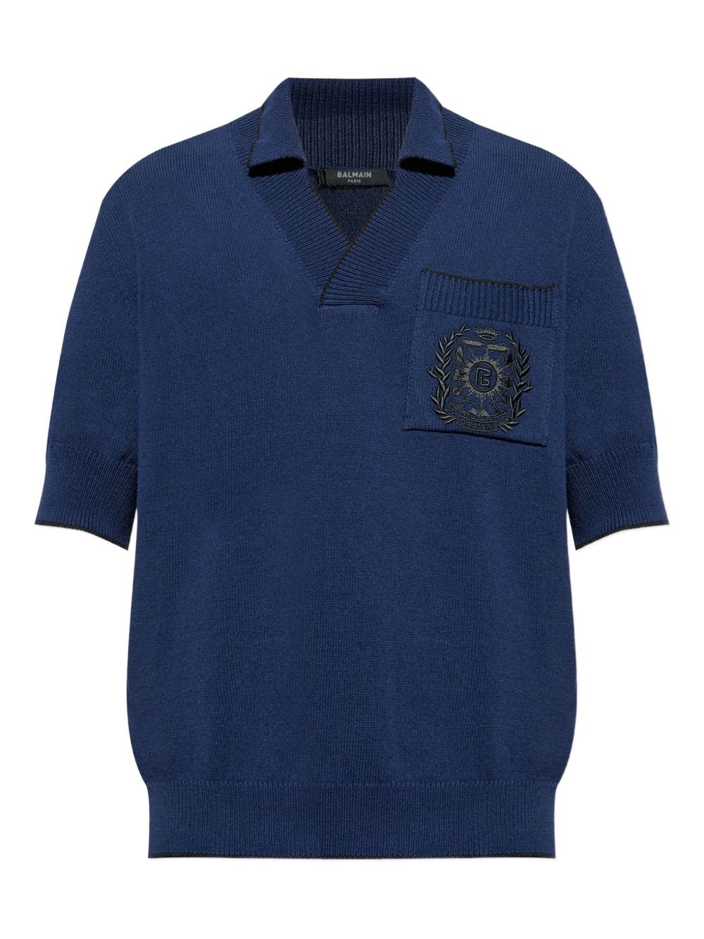 polo-collar t-shirt Highlights - Navy blue - Embroidered logo detail - Spread collar - Patch pocket - Ribbed cuffs Made in France Composition Cotton 100% Washing instructions Read Manufacturer Guidelines