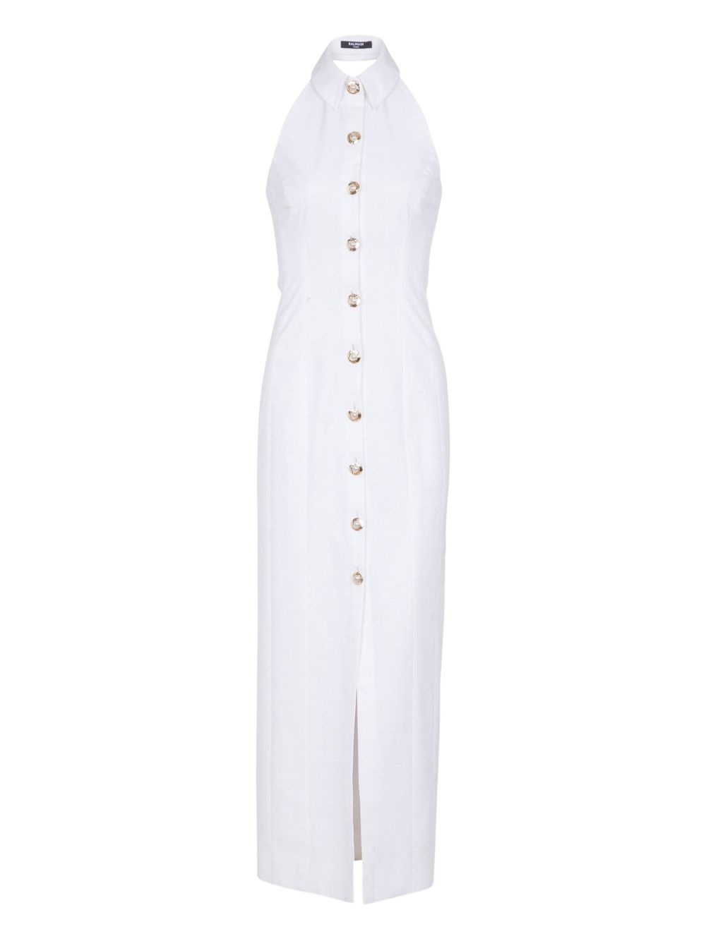poplin midi dress Highlights - White - Front button fastening - Halterneck - Mid-length Made in Italy Composition Cotton 100%