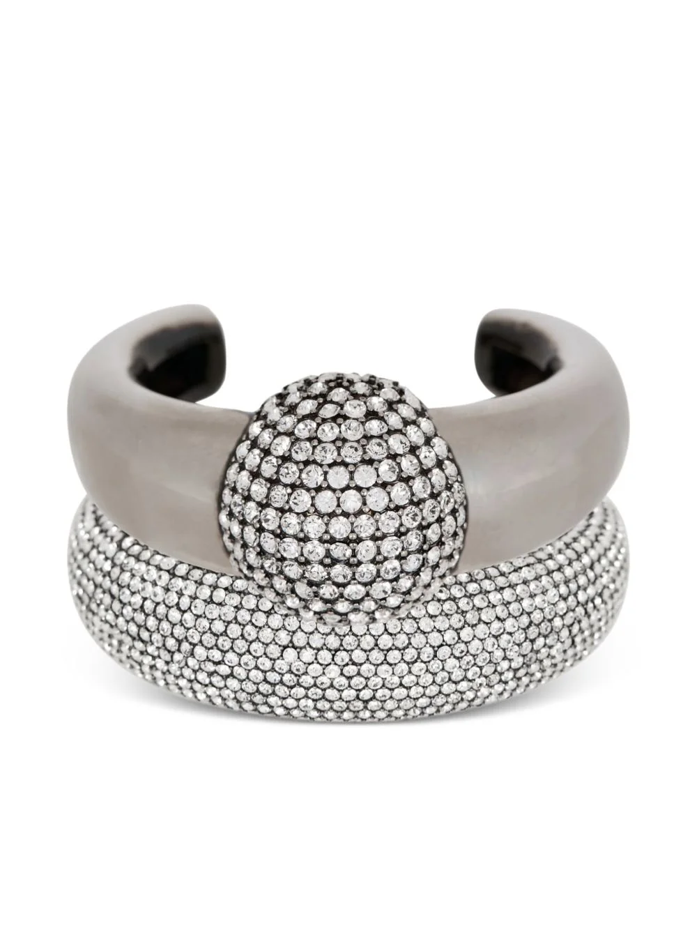 rhinestone-embellished bangles set Highlights - Silver-tone - Set of two - Embellished - Bangle style - Open cuff Made in Italy