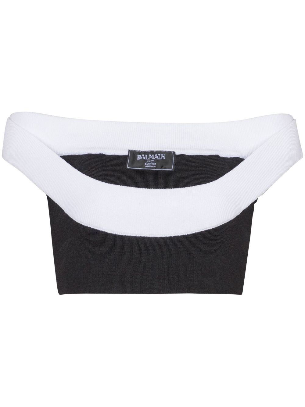ribbed-knit cropped top Highlights - Black/white - Ribbed knit - Boat neck - Off-shoulder - Sleeveless - Logo tag - Straight hem - Cropped Made in France Composition Viscose 80%, Polyester 20% SIZE & FIT FittingInformation Designed for a close fit throughout Cropped in length Made with a midweight knit, this piece offers some stretch