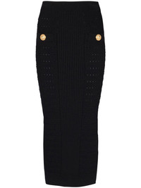 ribbed-knit pencil skirt black ribbed knit pencil design mid-rise faux pocket detail mid-length Made in Italy Composition Body: Viscose 83%, Polyamide 17% SIZE & FIT Measurement LENGTH 33.46 in(85 cm) WAIST 23.62 in(60 cm) HIPS 27.55 in(70 cm)