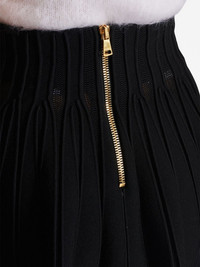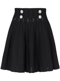 ribbed-knit pleated skater skirt Signature Balmain details – in the form of four silver-tone lion-embossed buttons – decorate this ribbed-knit textured mini skirt. Rendered in black, it falls to a flared hem. Highlights - Black - Textured finish - Fully pleated - Embossed silver-tone buttons - High waist - Flared - Rear zip fastening - Gold-tone hardware - Thigh-length Made in Italy Composition Body: Viscose 88%, Polyester 12% Washing instructions Specialist Cleaning