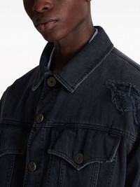 ripped-detail denim jacket Highlights - Black - Cotton - Ripped detailing - Embroidered logo to the rear - Classic collar - Chest flap pockets - Front button fastening - Two side slit pockets - Long sleeves - Straight hem Made in Italy Composition Cotton 100% Washing instructions Read Manufacturer Guidelines