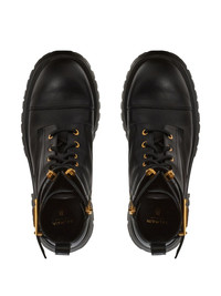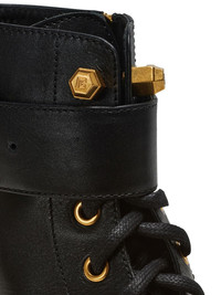 Romy lace-up leather boots Balmain's bold design direction is showcased in the bulky silhouette of the Romy Ranger boots. They're fitted with a gold-tone plaque at the side and set atop a bulky sole for a daring look. Highlights - Jet black - Calfskin - Tonal stitching - Gold-tone hardware - Logo plaque - Removable ankle strap - Pull-tab at the heel - Round toe - Front lace-up fastening - Side zip fastening - Branded leather insole - Ridged rubber sole Made in Italy Composition Leather 100%