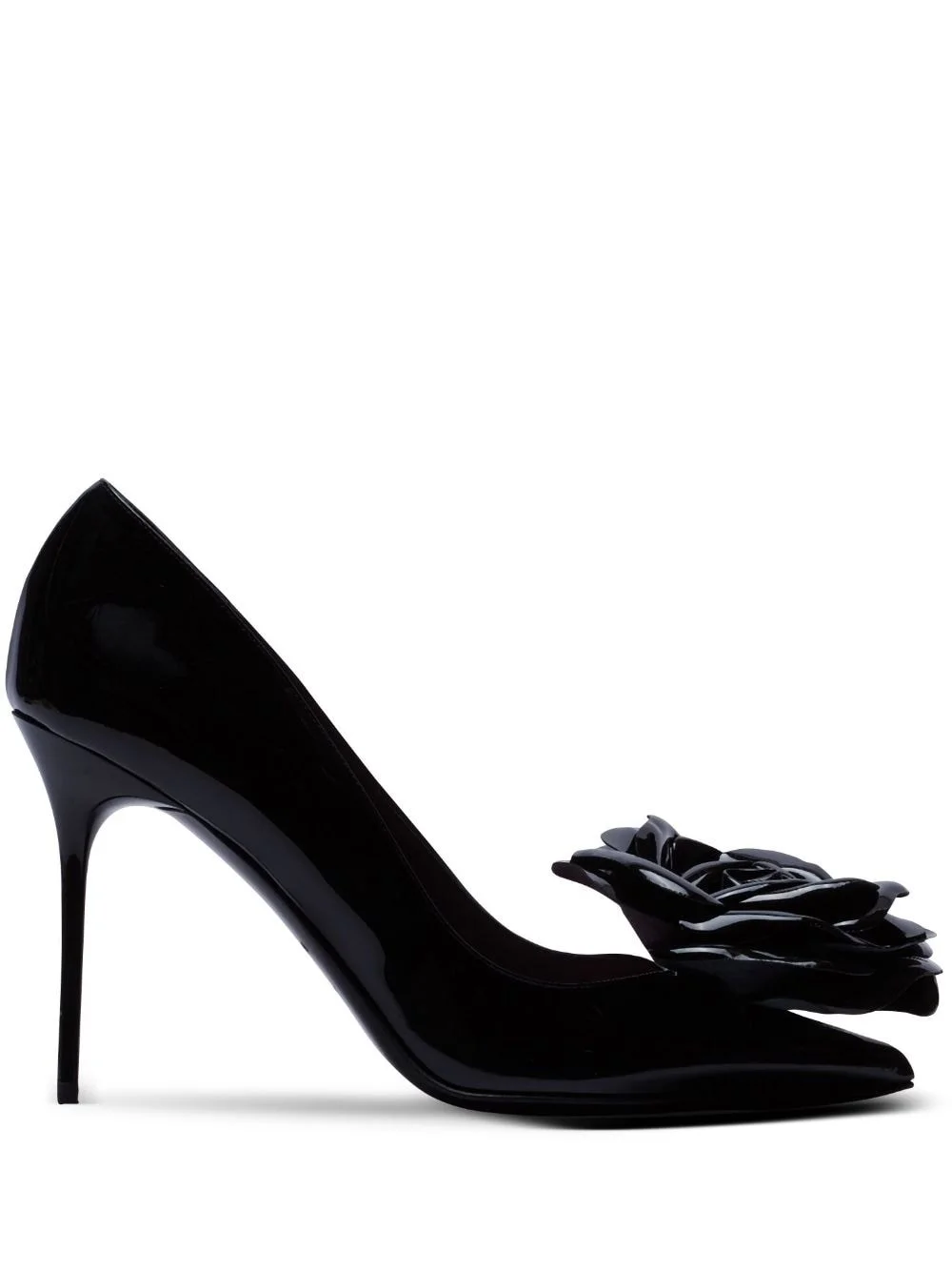 Ruby 95mm leather pumps Highlights - Black - Leather - Patent finish - Floral applique - Pointed toe - Branded leather insole - High stiletto heel Made in Italy Composition Outer: Calf Leather 100% Lining: Leather 100% Sole: Leather 100%