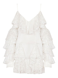 ruffled mini dress Highlights - White - Fully ruffled - Sleeveless - Off-shoulder - Long sleeves Made in France Composition Silk 100% Washing instructions Read Manufacturer Guidelines