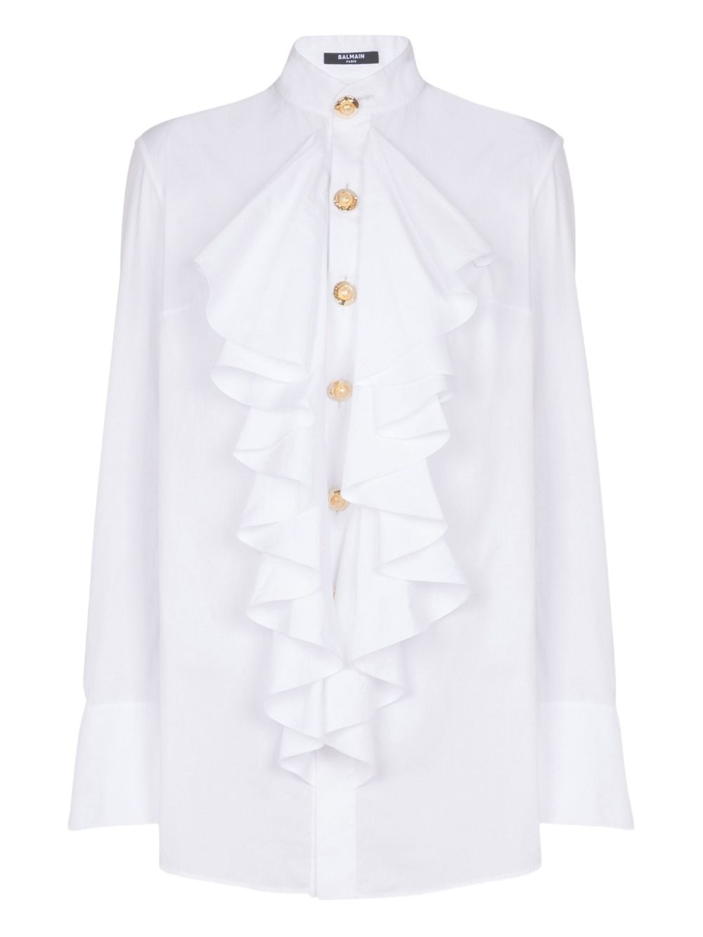 ruffled poplin shirt Highlights - White - Front button fastening - Stand-up collar - Buttoned-cuff sleeves - Embossed gold-tone buttons Made in Italy Composition Cotton 100%