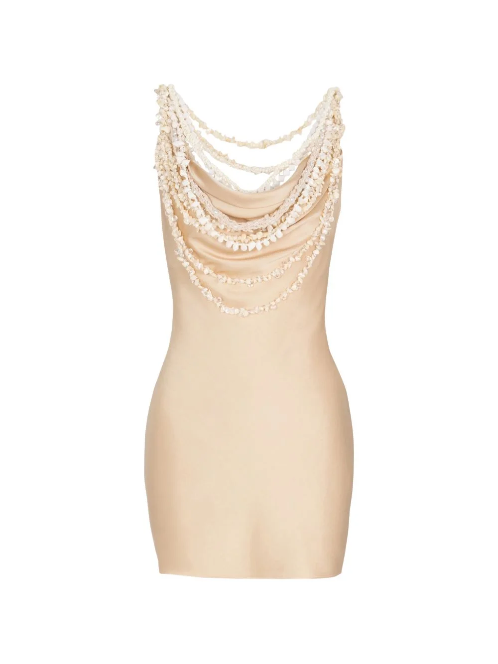 shell-embellished mini dress Highlights - Beige - Silk - Sleeveless - Shell embellishment Imported Composition Silk 100% Washing instructions Read Manufacturer Guidelines