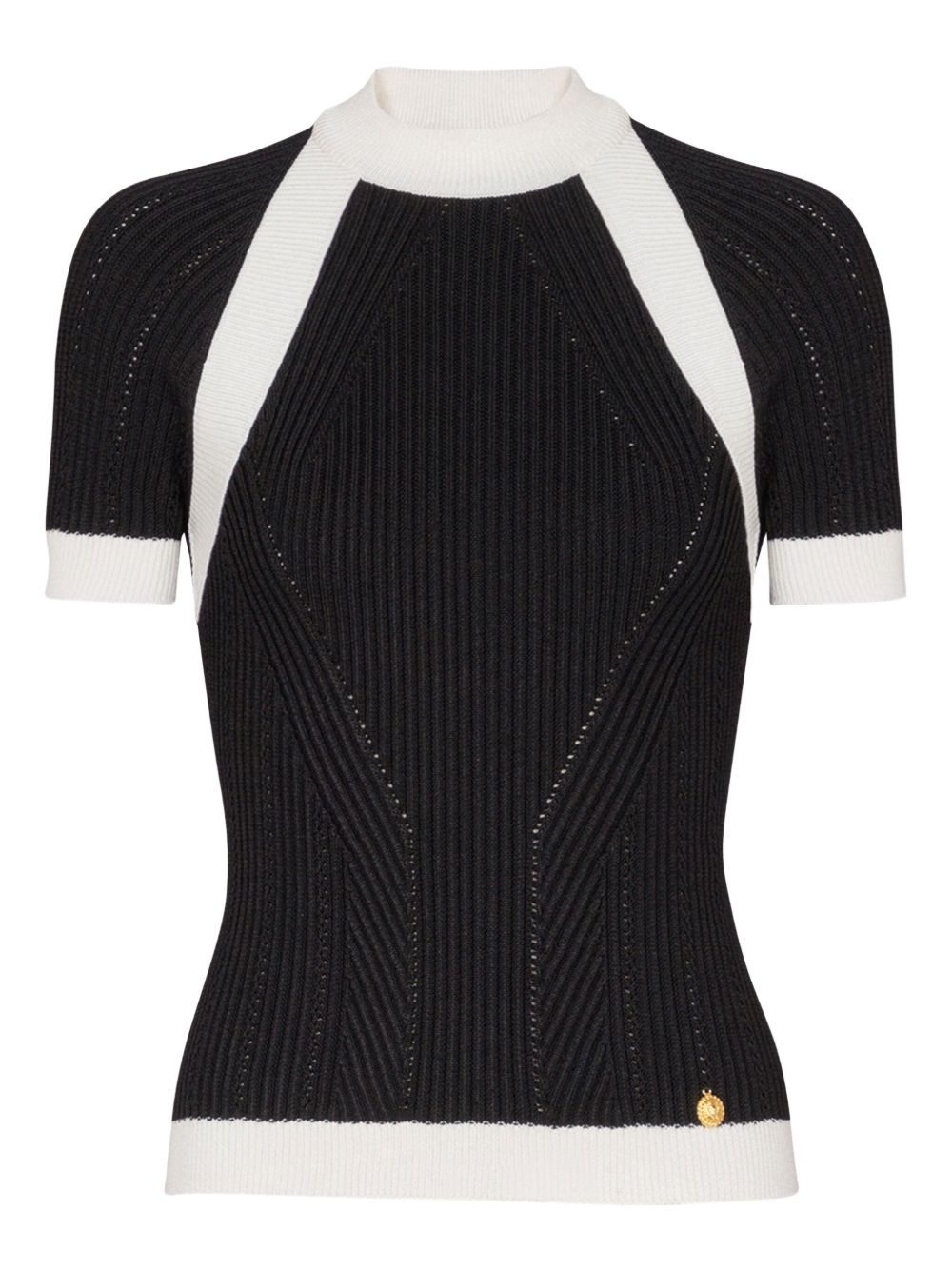 short-sleeved knit top Highlights - Black - Crew neck - Contrasting trim - Straight hem Made in Italy Composition Viscose 84%, Polyester 16%