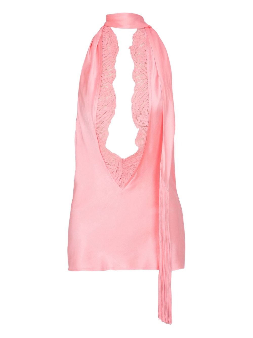 silk halterneck top Highlights - Rose pink - Plunging v-neck - Open back - Lace trim - Scarf detailing Imported Composition Silk 100%