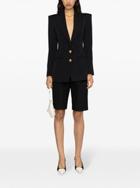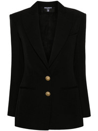 single-breasted virgin wool blazer Cut from compact midweight virgin wool, this black single-breasted blazer reveals Balmain's penchant for timeless tailoring silhouettes. Padded shoulders and embossed gold-tone buttons add a signature opulent flair. Highlights - Black - Virgin wool - Peak lapels - Front button fastening - Logo-embossed buttons - Fitted waistline - Shoulder pads - Long sleeves - Buttoned cuffs - Chest welt pocket - Two front jetted pockets - American rear vent - Internal slip pocket - Full lining Imported Composition Lining: Viscose 52%, Cotton 48% Outer: Virgin Wool 100% SIZE & FIT Model measurements Height 5 ft 10 in(1.78 m) Bust/Chest 31.49 in(80 cm) Hips 35.03 in(89 cm) Waist 23.62 in(60 cm) Measurement SLEEVE LENGTH 24.4 in(62 cm) LENGTH 29.52 in(75 cm) WAIST 33.85 in(86 cm) FittingInformation Designed for a slim fit that sits just away from the body offering a close yet comfortable fit The vented hem offers movement at the rear Made from a midweight non-stretch fabric This piece fits true to size – take your usual size Washing instructions Dry Clean Only