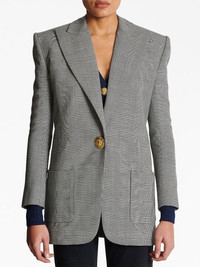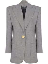 single-breasted wool blazer Highlights - Black - Virgin wool - Prince of wales check print - Peak lapels - Embossed gold-tone buttons - Two front patch pockets - Long sleeves - Straight hem Imported Composition Body: Virgin Wool 100% SIZE & FIT Measurement SLEEVE LENGTH 22.44 in(57 cm) LENGTH 30.31 in(77 cm)