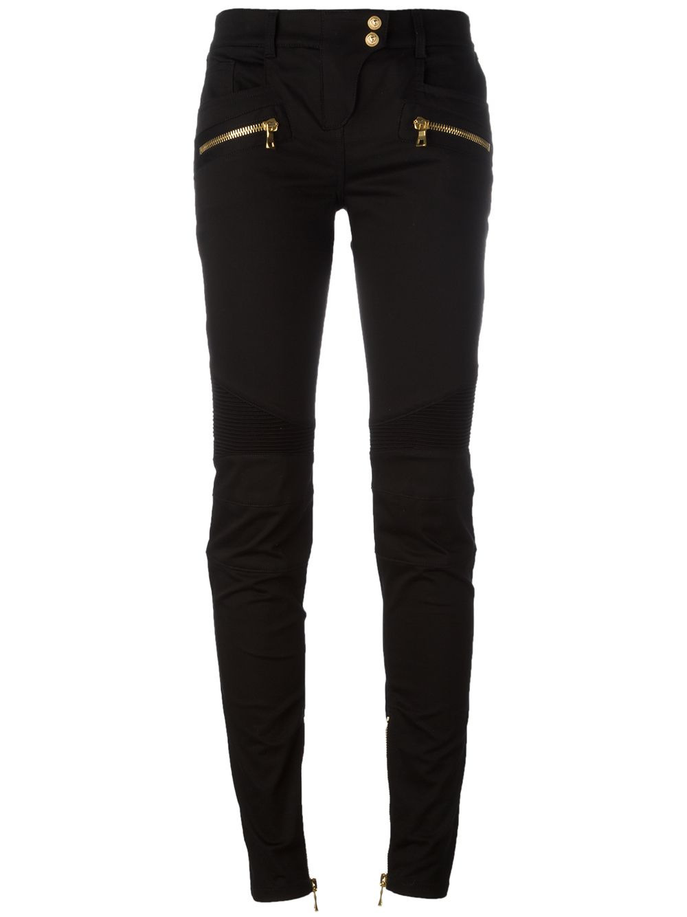 skinny biker trousers Olivier Rousteing continues his evolution of Balmain’s classic styles into the brand’s AW17 collection and beyond. Equal amounts decorative, daring and refined, these garments are an elevation of Parisian craftsmanship. Crafted from a soft cotton-blend, these skinny biker trousers from Balmain feature a waistband with belt loops, a front button fastening, a front zip pocket and zipped cuffs. Made in France Composition Cotton 95%, Polyurethane 5%