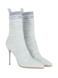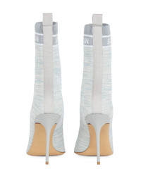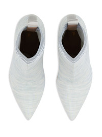 Skye 95mm knit ankle boots light grey jacquard logo motif pointed toe knitted upper ankle-length high stiletto heel leather sole Made in Italy Composition Outer: Polyester 70%, Elastodiene 30% Lining: Smooth Leather 100% Sole: Leather 100% Washing instructions Specialist Cleaning