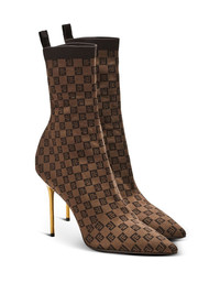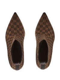 Skye 95mm monogram-jacquard boots Highlights - Brown - Stretch-design - Monogram jacquard - Pull-tab at the heel - Pointed toe - Slip-on style - 95mm stiletto heel - Branded insole - Leather sole - Ankle-length Made in Italy Composition Outer: Polyester 70%, Elastane 30% Washing instructions Specialist Cleaning