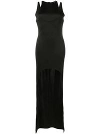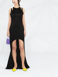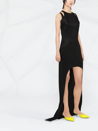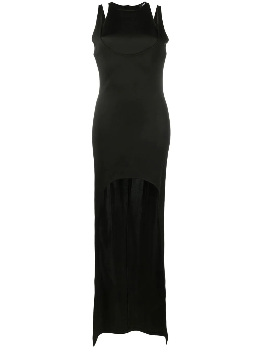 sleeveless layered long dress Illustrating Balmain's contemporary aesthetic, this layered piece from the house's SS22 collection features a dramatic cut-out to the front. Made in France Composition Viscose 86%, Polyamide 10%, Spandex/Elastane 4% SIZE & FIT Model measurements Height 5 ft 11 in(1.8 m) Bust/Chest 31.49 in(80 cm) Hips 35.43 in(90 cm) Waist 25.19 in(64 cm) FittingInformation This piece fits true to size. We recommend you get your regular size Designed for a close fit at the bust, waist and hips Made with a mid-weight stretch fabric Washing instructions Dry Clean Only