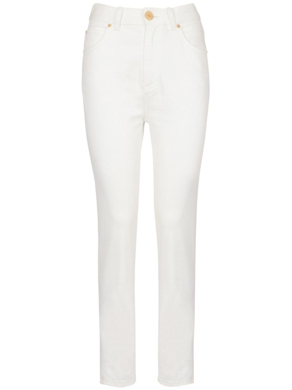 slim-cut jeans Highlights - White - Cotton blend - Denim - Slim cut - Front button and zip fastening - Belt loops - Classic five pockets - Straight hem - Ankle-length Made in Italy Composition Cotton 98%, Elastane 2%
