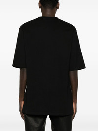 slogan-patch cotton T-shirt Highlights - Black/white - Cotton - Soft jersey - Slogan patch to the front - Crew neck - Drop shoulder - Short sleeves - Straight hem Imported Composition Cotton 100%, Polyester 100% SIZE & FIT Model measurements Height 6 ft 2 in(1.87 m) Bust/Chest 36.41 in(92.5 cm) Hips 37 in(94 cm) Waist 29.52 in(75 cm) FittingInformation Designed for a relaxed fit, this piece allows for comfort and movement when worn Made from a midweight non-stretch fabric, this piece offers minimal elasticity when worn This piece fits true to size – take your usual size